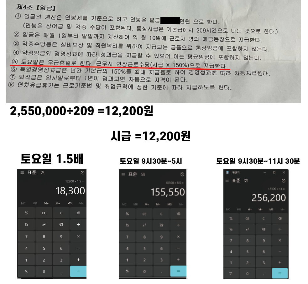 10만원은 말도안되는금액이라 생각하여 근로계약서에 있는 내용을 근거로