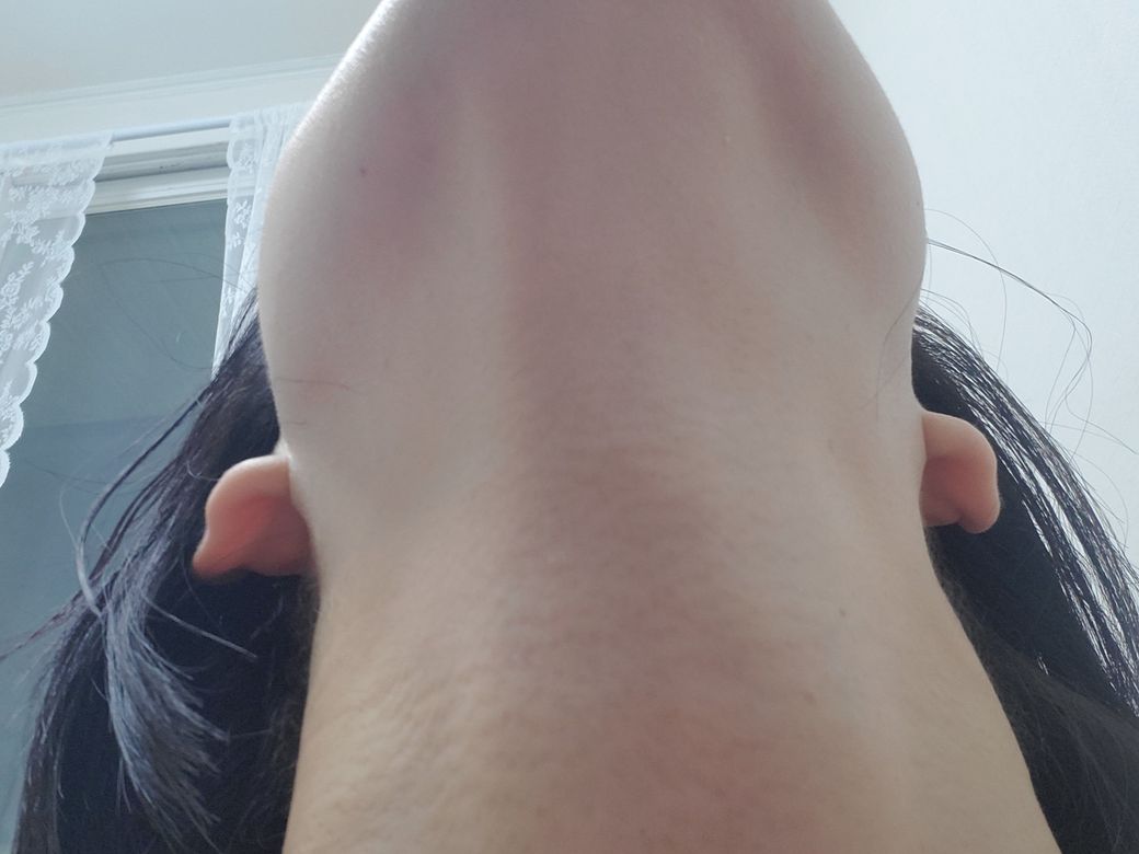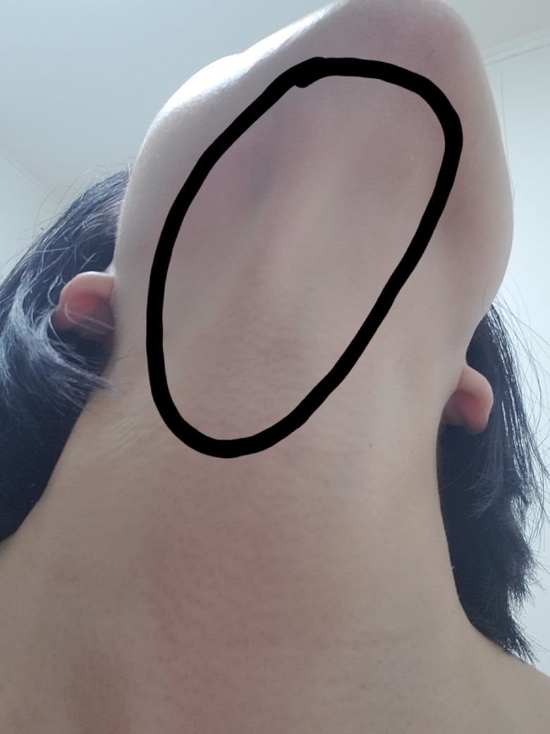 사진은 턱을들고있을때 염증때매 튀어나와보여요