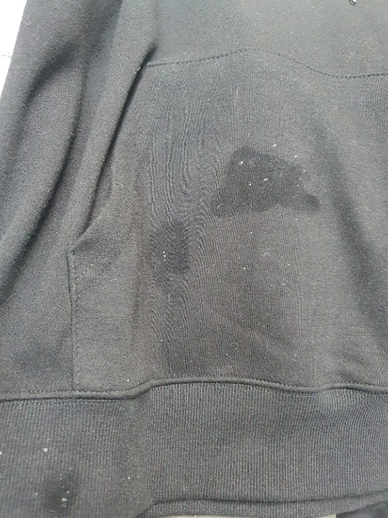 개인적으로 좋아하는 후드티인데 조카랑 놀이주다 어느순간 발견했어요. 물로 살짝 지우려고 했는데 안지워지내요