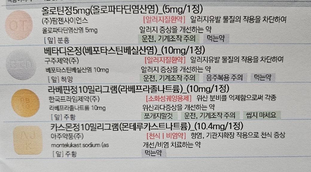 처방받으신 약들에는 스테로이드제가 들어있지 않습니다