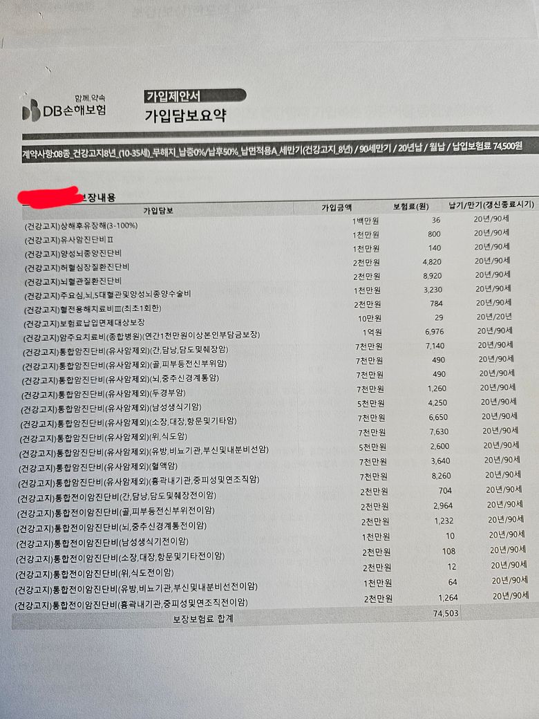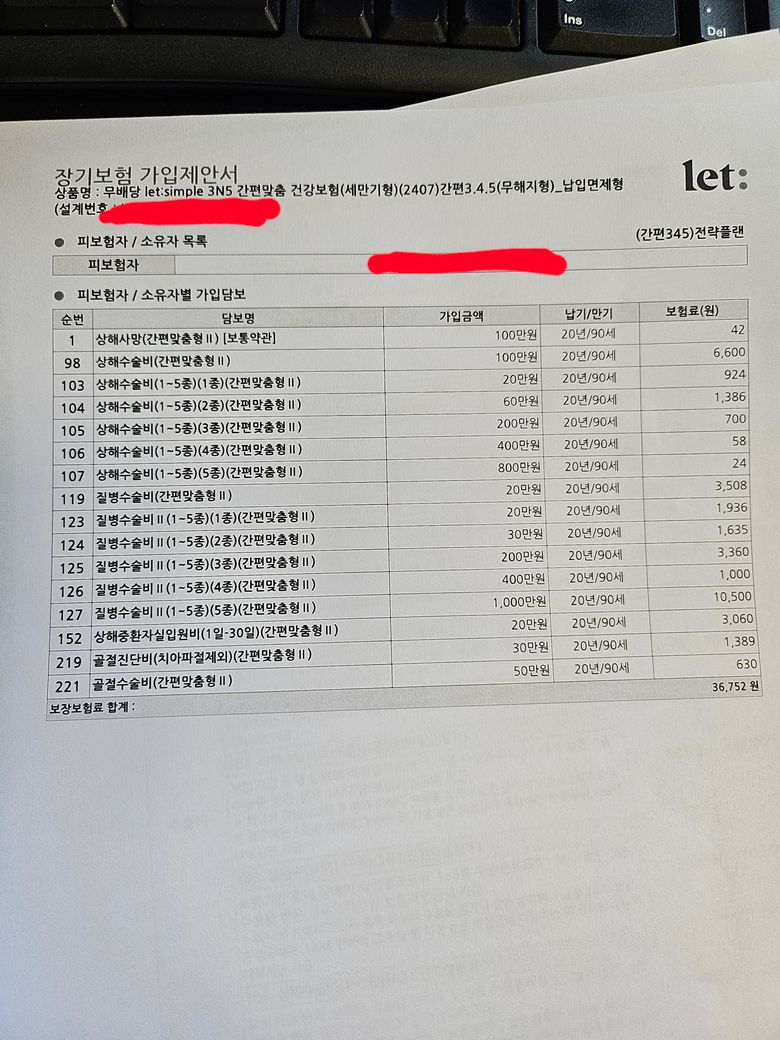 저정도 보장이면 합쳐서 3~5만원도 안하겠는데요? 너무 보장이에 비해 비싸요