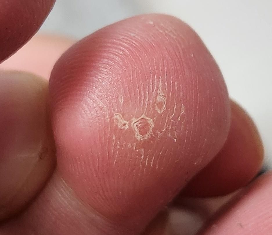 2023년 말에 레이저로 족저사마귀 제거한 후 작년 2월부터 올해 2월까지 베루말을 발랐다 중단했습니다. 4개월이 지난 현재 딱히 튀어나오지는 않았으며 꼬집었을 때 통증도 없습니다. 그러나 각질이 제대로 재생성 되지 않아서 피부과, 가정의학과에 갔습니다.