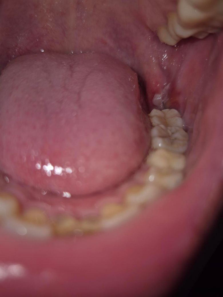 사랑치 발치하고 3일차인데 아직도 병원에서준 약없이는 통증이 좀 심한편이고 붓기도있는데 입안에 사진처럼 하얀뭔가 생겼는데 문제있나요..?