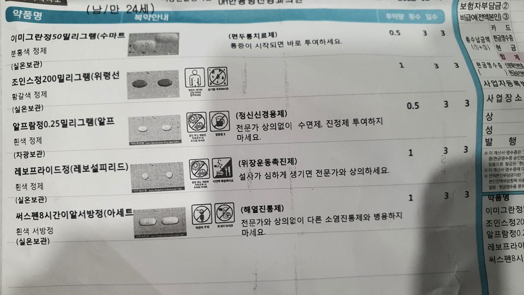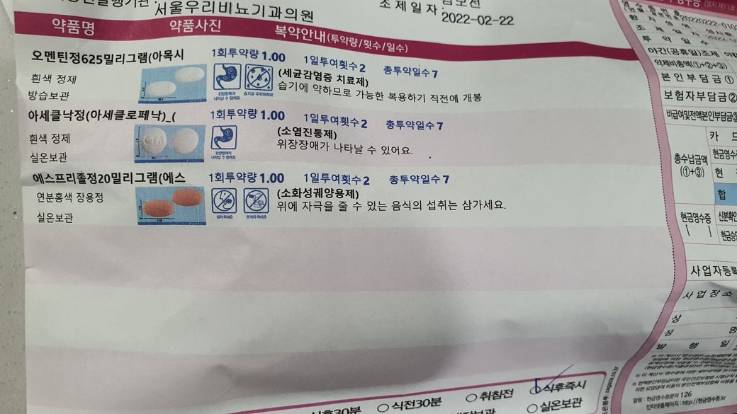 항생제와 진통제 위장약들이 여럿 겹칩니다.