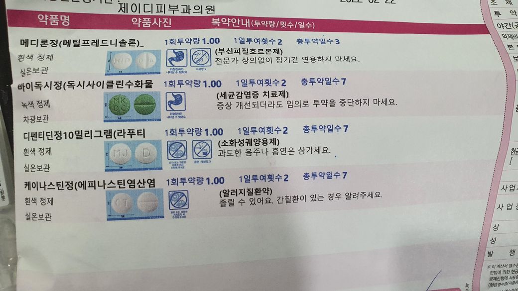 다만, 피부과에서 처방 받은 약에 포함된 항생제는 음식물과 상호작용이 많아서 흡수율에 영향을 줄 수 있기 때문에 식사와 간격을 1~2시간을 두고 복용하는 것을 권합니다.
