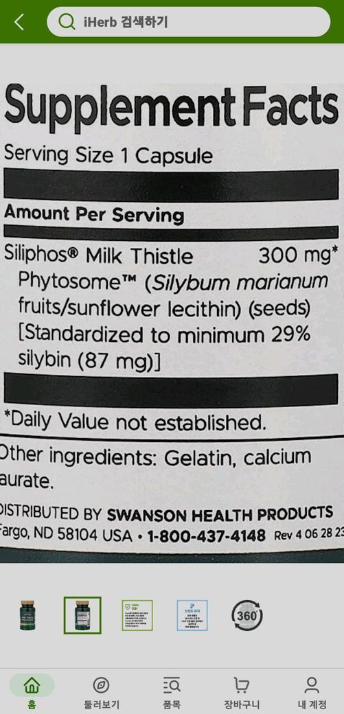 또한 이 원료는 실리빈으로 최소 29%를 보장하는 것 같고, 각각의 원료 용량에 0.29를 곱하시면 활성성분인 실리빈의 용량을 계산하실 수 있습니다.