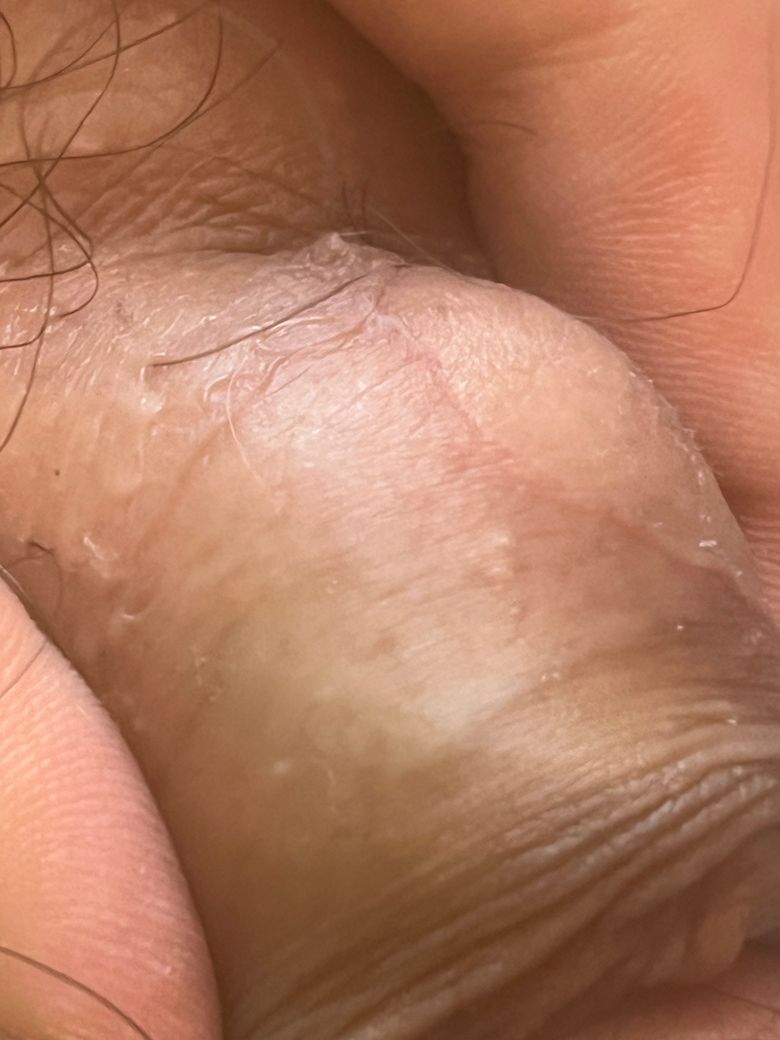 사진으론 정확한 진단 불가능하며 직접 육안으로 보이고 진료 받으셔야 합니다. 수포성 병변일 가능성도 있기에 헤르페스를 배제하진 못합니다. 정확한건 비뇨의학과 진료 받으셔야 합니다