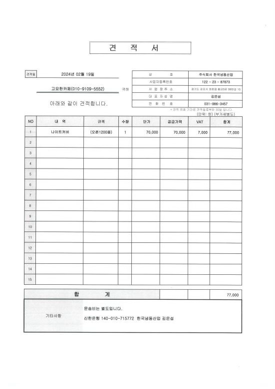 3) 혹시 나이트커버는 비닐만 수리할 순 없나요? 만약 가능하다면 수리비용이 얼마일까요?