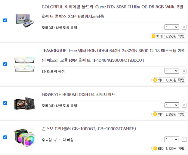 혼자 조립해보는 것도 경험이고 공부라고 생각되어서 유튜브나 네이버에서 이것 저것 봐서 취향대로 골랐는데 부품들 이렇게 주문해도 문제없이 호환되나요?