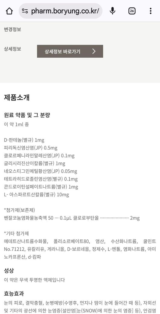 뉴브이로토는 인공눈물넣으면 목까지내려온 느낌받았어요.