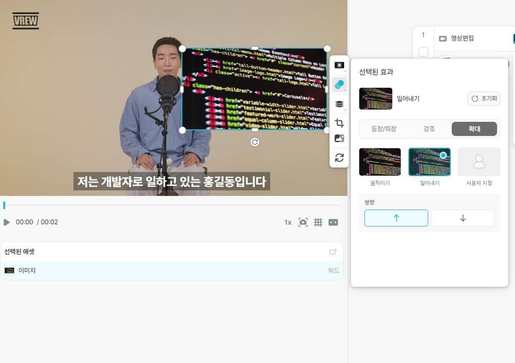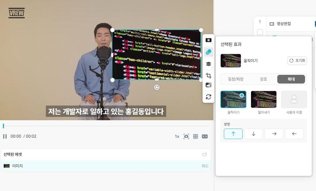 브류에서는 짤을 넣고 해당 애니메이션 효과를 넣으면.
