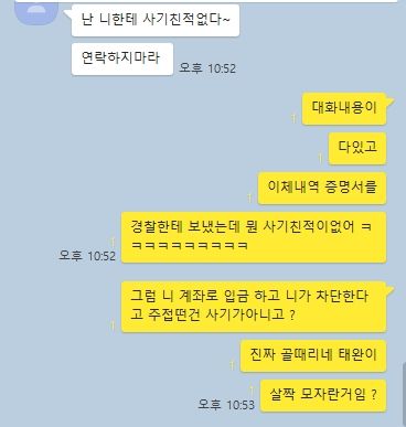 하 계정거래 사기꾼과의대화내용입니다