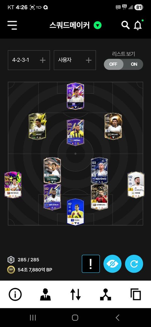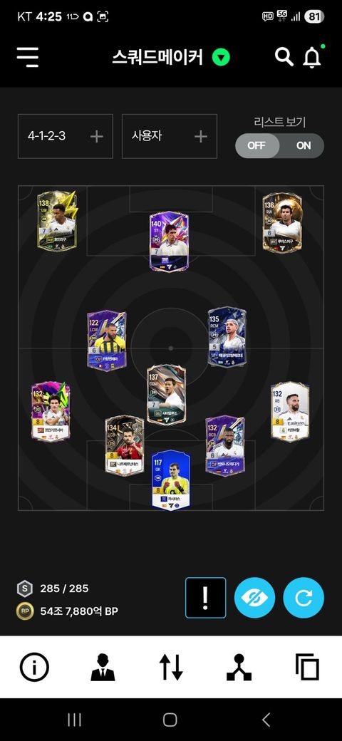 피파4 54조 레알로 팀갈 하려고 합니다. 주로 사용 하는 포메는 4123. 4231입니다. 4231은 문제가 없는거 같은데 4123으로 하면 벤제마가 능력치가 확 떨어지네요 4123할때 벤제마 말고 다른 선수 있을까요?
