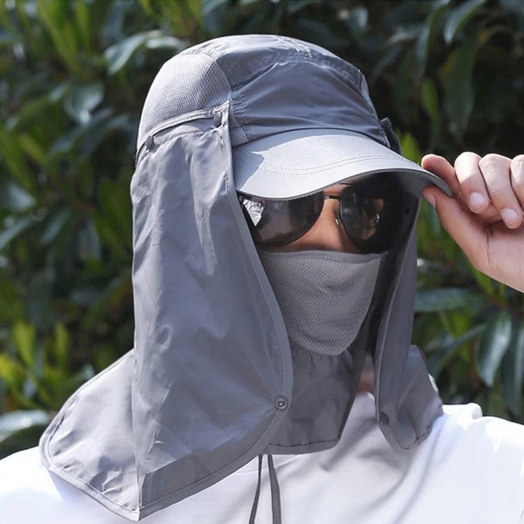 특히, 얼굴 전체를 가릴 수 있도록 챙이 충분히 넓고 단단한 것이 좋습니다