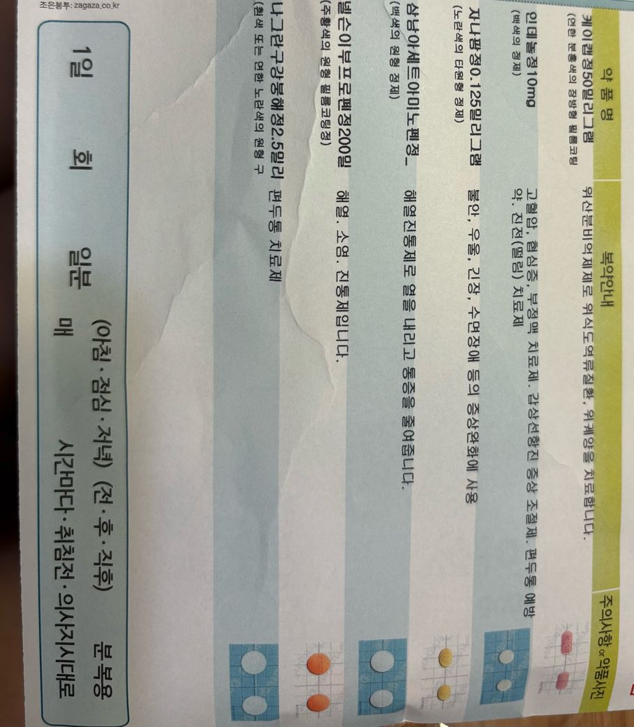 약 봉투 일부가 나오지 않아 용법이 확인되지 않는데요.