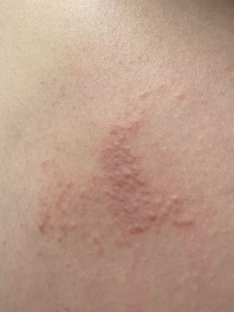 충분히 땀띠를 의심할 수 있어 보이는 소견입니다. 다만 범위가 넓지 않고 국소적으로 모여있는 부분이 전형적인 소견은 아닙니다. 오히려 단순히 국소적으로 두드러기나 접촉성 피부염, 습진 등의 가능성도 충분히 있어 보입니다. 각설하고 그냥 방치하기 보다는 피부과 진료 및 검진을 통한 감별 및 치료를 받으시는 것이 좋겠습니다.