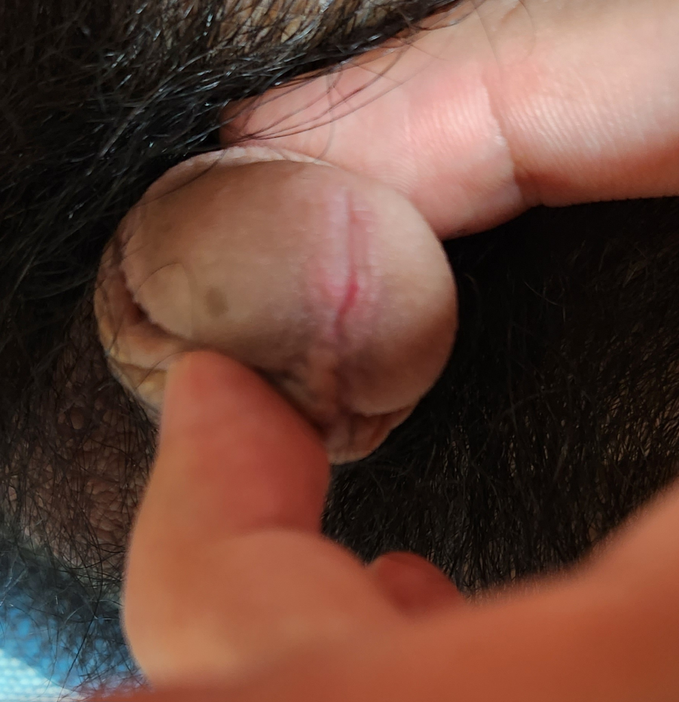 요도염일수있거나 비벼져서 생긴 상처일수있습니다. 손닿게 하지말고 단순히 경과관찰을 하셔도 좋을것 같습니다.