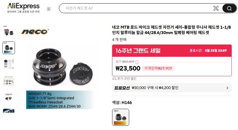 알리익스프레스 에서 MTB 자전거 헤드셋 부품을 두개중 어떤것으로 선택할까요?