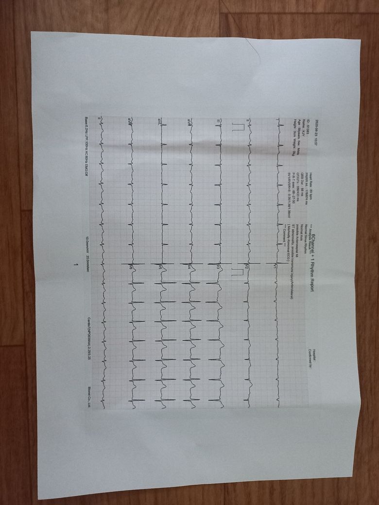 최근 누울때 심장 압박통증이 생기셨다고 하여 약타러 내과가셔서 심전도 하셨다는데 의뢰서 작성 해주고 대학병원 가보라고 하셨대요 심전도 한번 봐주세요