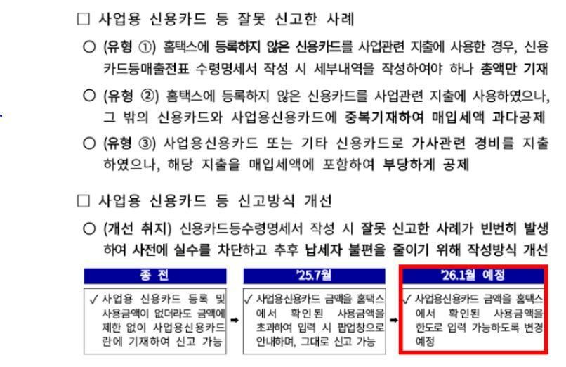 1. 개인사업자는 홈택스에 미등록카드이더라도 사업 관련 지출이라면 부가세 공제 및 경비처리 가능합니다. 단 , 기재하신 것처럼 일부 개정이 된 것으로 보여집니다.