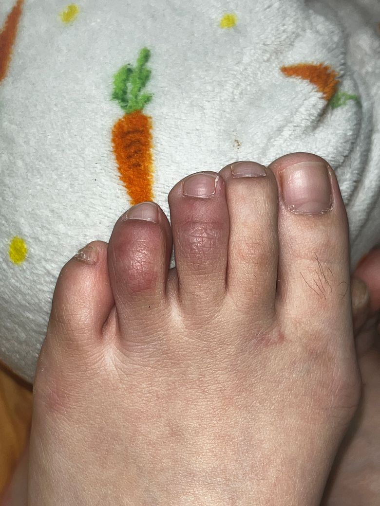 사진처럼 한쪽발의 두 발가락이 2주전쯤부터 모기물린곳처럼 붓고 빨갛고 가려웠는데 10일? 정도 지나니 이제 가렵지는 않은데 색이 좀 멍든것처럼 변했어요.. 이게 동창인지 통풍인지.. 아니면 설마 당뇨증상인가요 병원을 가려해도 어디병원을 가야할지 모르겠어요 답변 부탁드리겠습니다..