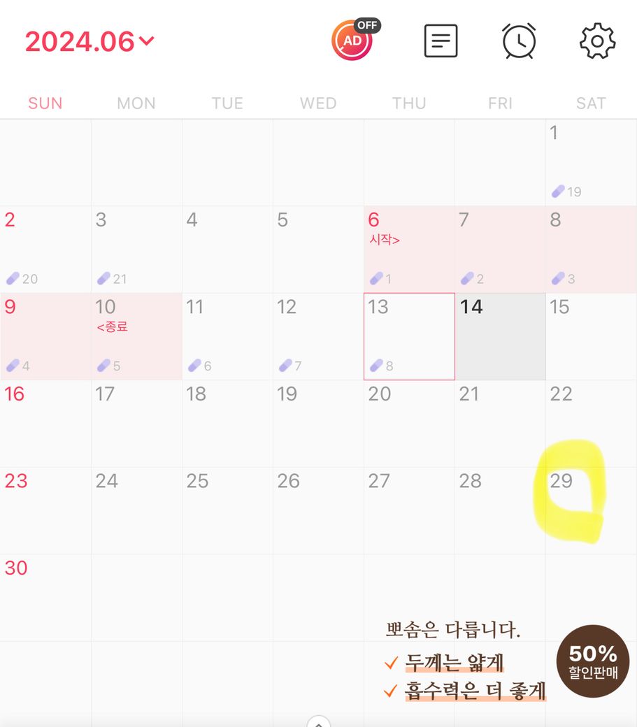 6월 29일에 중요한 일이 있어서 생리를 늦추고 싶다면
