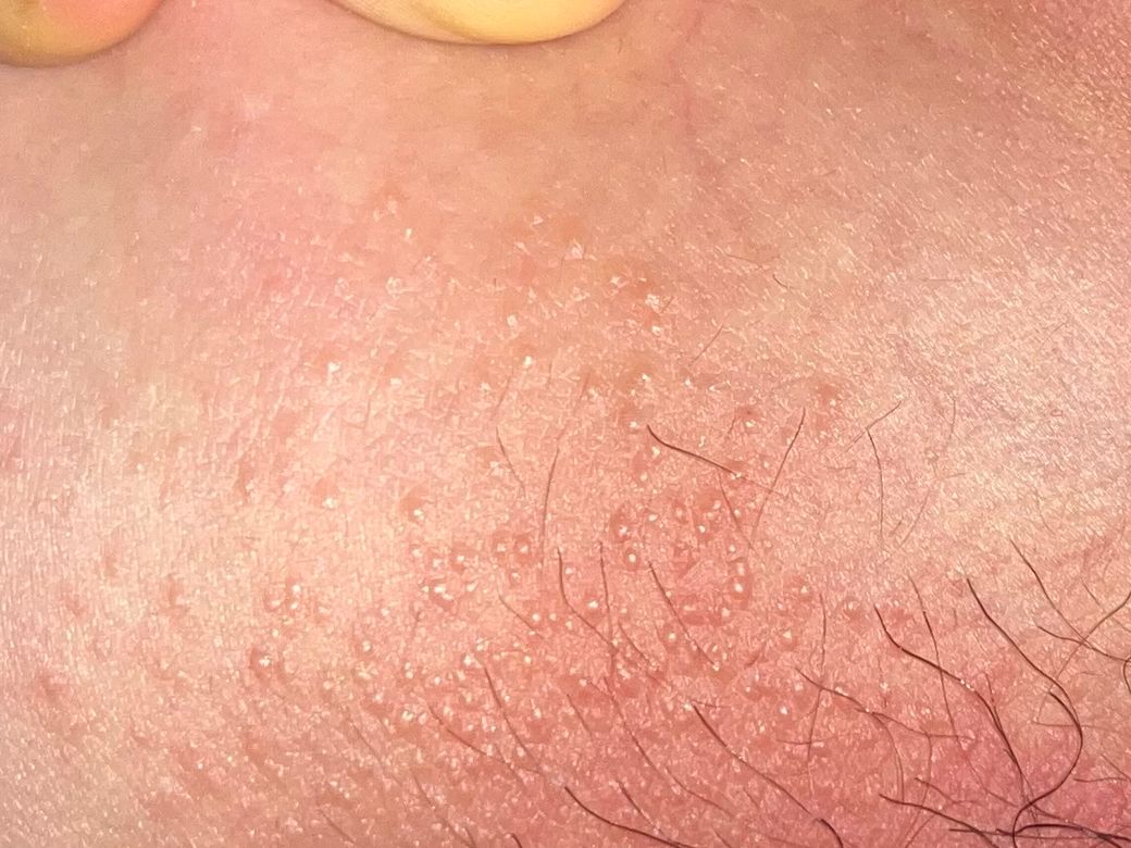 생리중입니다 어제부터 털부근이 엄청 간지러웠는데 샤워하다 만져보니깐 오돌토돌한게 느껴져서 봤더니 저렇게돼있습니다 엉덩이헤르페스인가요..?