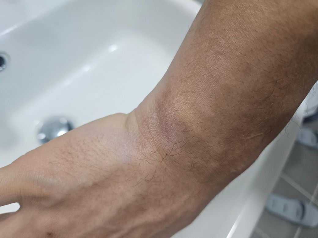사진상으로 보면 손목과 전완부에 멍처럼 보이는 색변화가 있고 TFCC손상이라면 더 예민해질수 있습니다. 침 치료이후라면 미세혈관이 터지면서 멍이 생기는 경우가 흔한데 보통 1-2주 정도 지속되기도 합니다. 특히 첫골이 더 긴경우가 있으면 손목 내측 부담이 커서 통증이 더 오래갈수 있습니다. 현재처럼 색이 변하고 통증있는건 크게 이상한 반응은 아닐가능성이 큽니다. 손목 사용을 당분간 줄이고 보호대 착용이 도움됩니다.