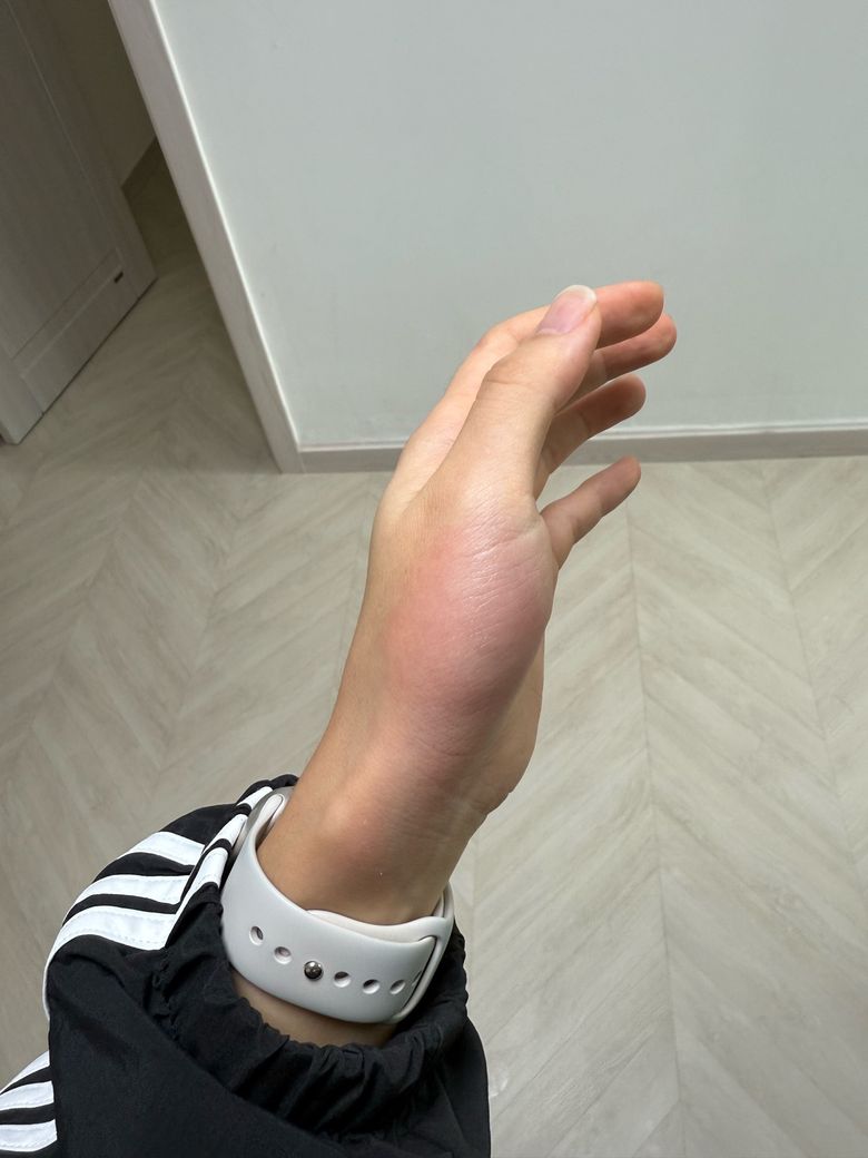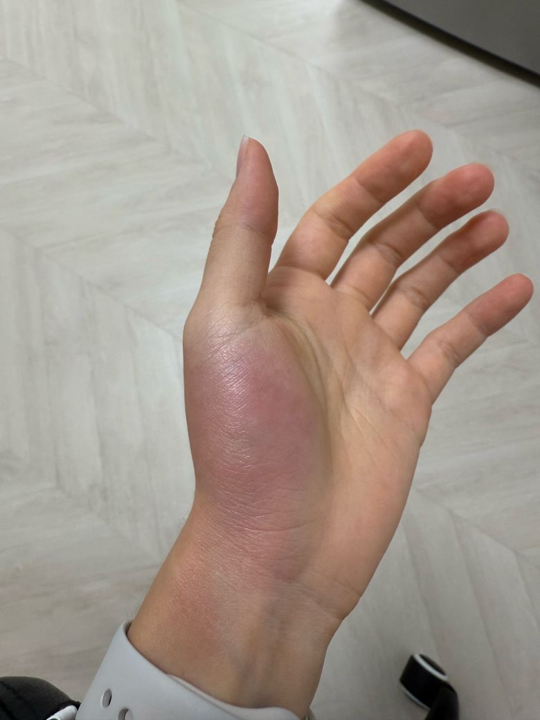 첫번째 사진이 오른쪽 손이고 왼쪽 손이 부은 손이에요