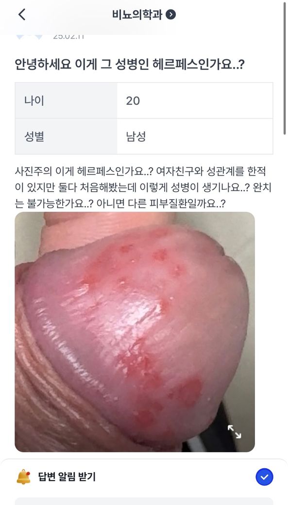 안녕하세요 저번에 헤르페스? 의심으로 질문을 했었는데요