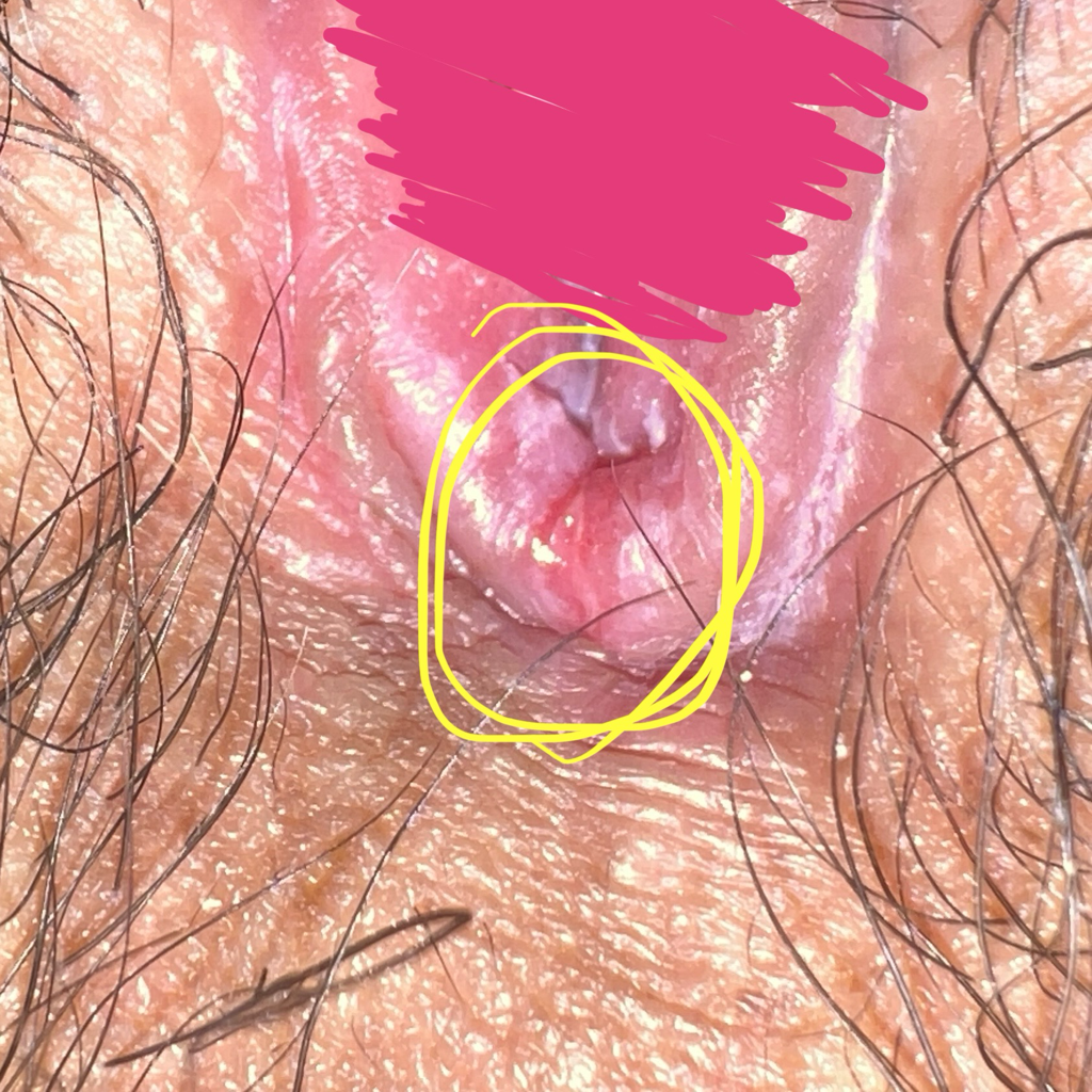 문제되는 상처는 질 입구에서 6시 방향(노란 동그라미)이고,