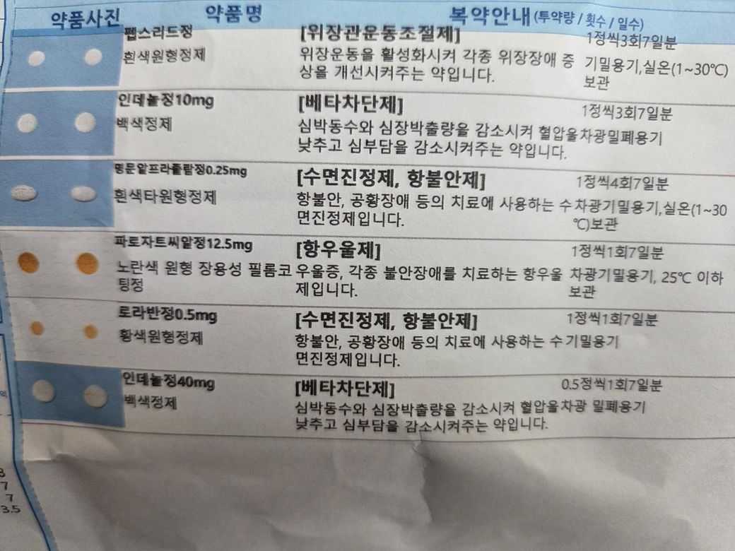그리고 7월26~27일(점심 저녁 2번씩 복용)에 여행갔는데 불안장애가 심해 다른 약을처방받아먹었는데(이건 약봉투가없네요) 현재미치는 영향이 있을까요?