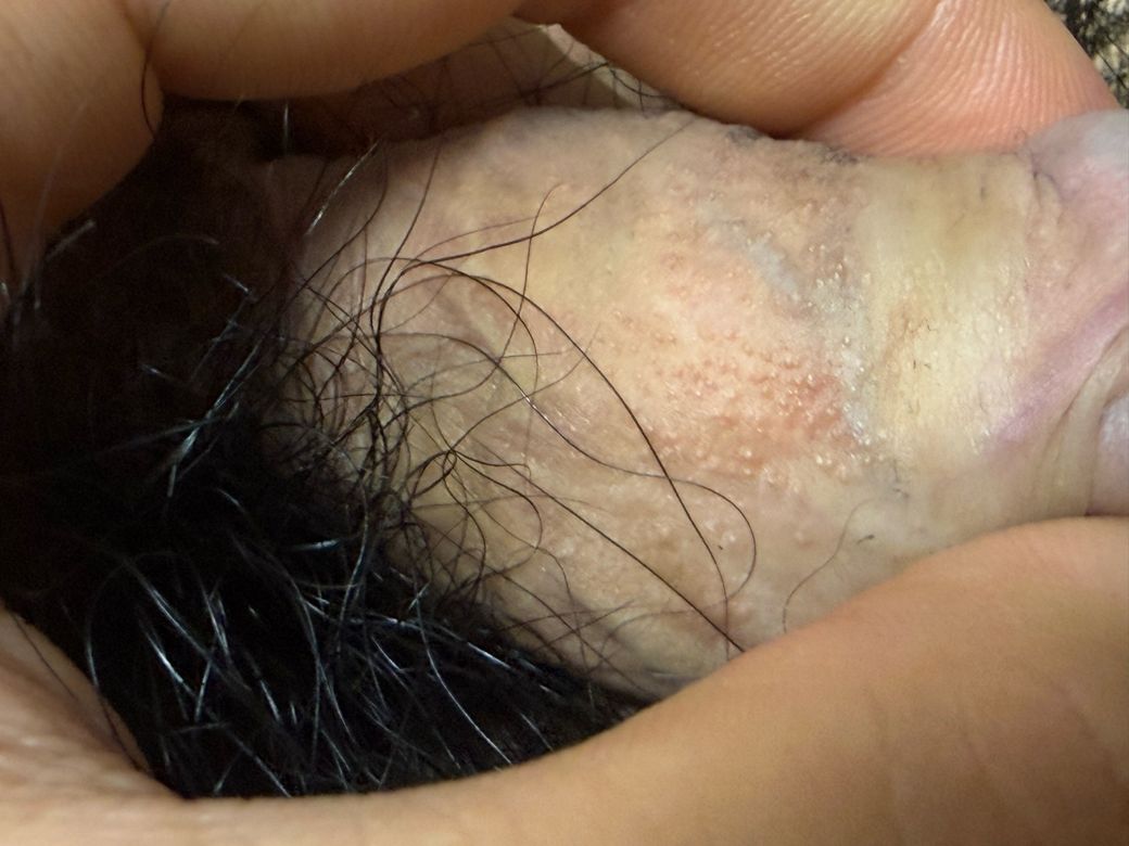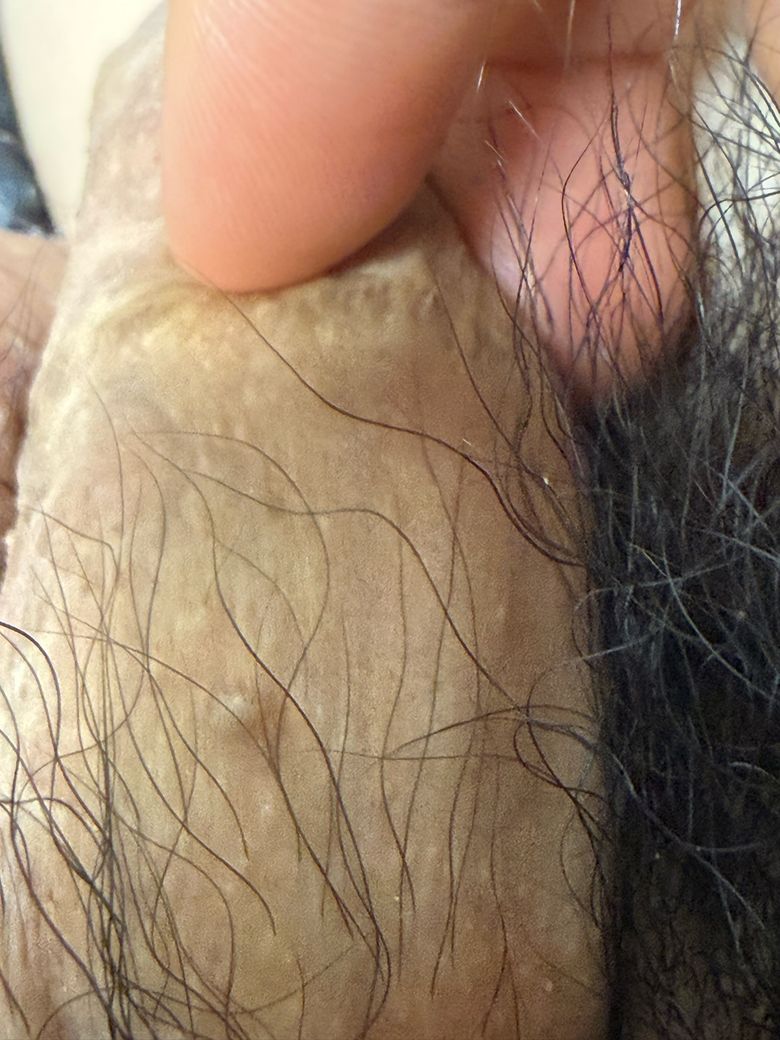 올려주신 사진상 작은 구진들이 관찰되는데 피지선의 과증식이나 비특이적인 구진으로 판단됩니다. 에이즈 감염에서 보이는 피부 병변의 특징적인 양상이 관찰되지 않으며 헤르페스 감염에서 보이는 수포성 병변이나 곤지름에서 관찰되는 사마귀 양상이 병변도 아니므로 성관계로 인해 감염되는 성매개성 감염 질환 가능성은 낮습니다. 가려움이나 통증이 없다면 좀 더 경과 관찰이 가능하겠으며 증상이 발생하거나 병변의 변화가 나타난다면 비뇨의학과 진료를 보시는 것을 권해드립니다.