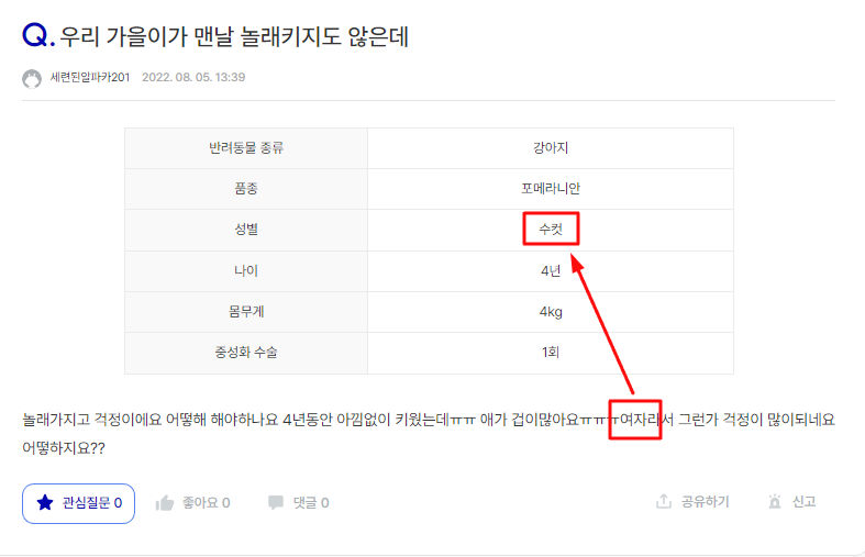놀래가지고 걱정이에요 어떻해 해야하나요 4년동안 아낌없이 키웠는데ㅠㅠ 애가 겁이많아요ㅠㅠㅠ여자라서 그런가 걱정이 많이되네요 어떻하지요??