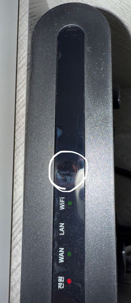 하필또 라우터 상태표시 LED가 끝나는 바로 위에 자리하고있어서 의심이 더증폭되는군요.