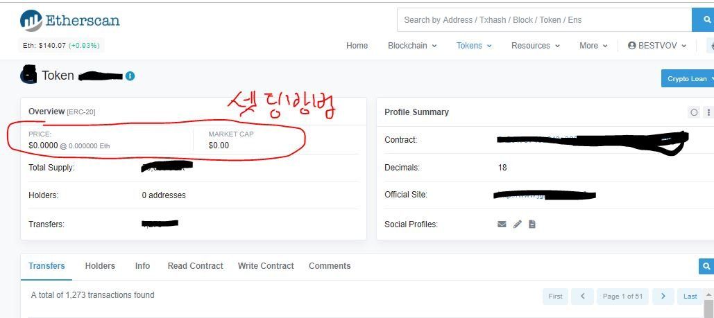 etherscan (이더스캔) 사이트 내 PRICE, MARKET CAP 셋팅 방법