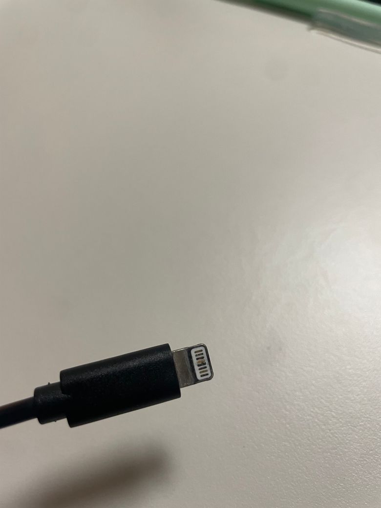 빼고 확인해보니 케이블이 검게 탄건지, 변색되어있었습니다. 아이폰 12 약 4~5년 사용했고, 케이블 변색되는건 이번이 처음. 케이블 사용한지 2주도 안되었고, 다이소꺼입니다