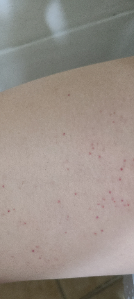 미세한 붉은 반점이 팔다리 위주로 생기는 증상이 많습니다.