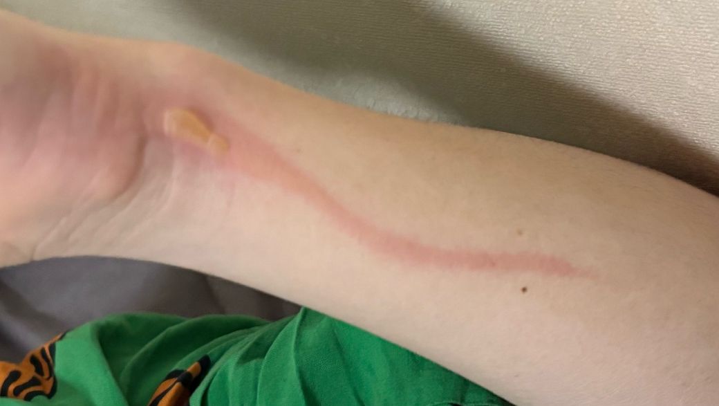 다만 팔을 따라 길게 생긴 화상이고 물집이 이미 보이는 점을 고려하면, 내일 외과나 피부과에서 진료를 받아 화상 깊이 평가와 적절한 연고·드레싱 처방을 받는 것이 보수적으로 안전합니다. 감염 예방과 흉터 최소화 측면에서도 병원 진료가 권장됩니다.