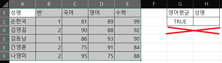 그리고 고급필터로 추출하려는데 이렇게 빨간 x표시 부분이 소실되는 이유는 뭘까요?