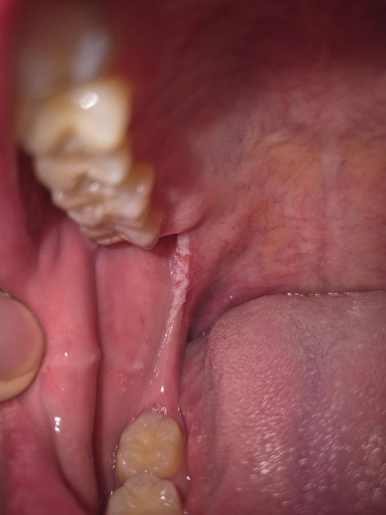 입 속 위와 아래를 연결해주는 부분이 하얗게 변했어요. 그 부위에 뭐가 닿는다고 아프지는 않는데 목이 칼칼하고 이물감이 들어요. 다른 구내염 사진 보면 저랑 비슷한 경우를 못봤는데 이것도 구내염이 맞을까요?