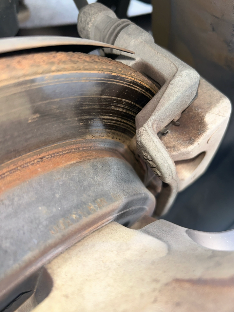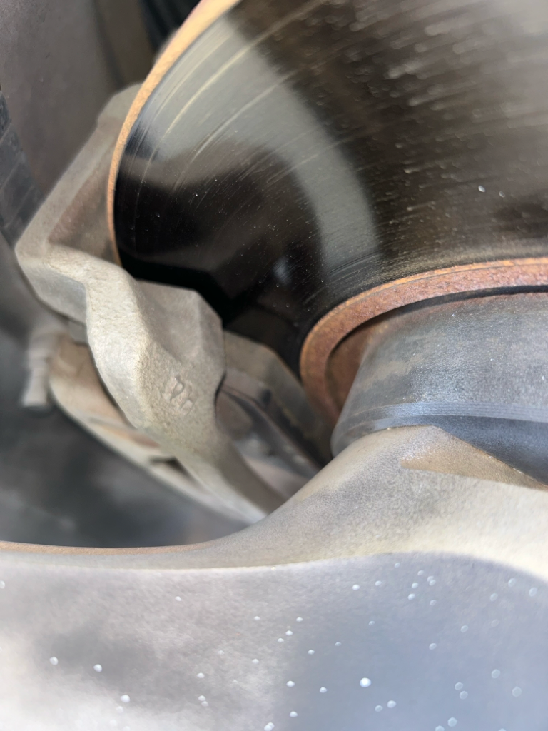 앞브레이크패드는 괜찮아보입니다. 디스크에 편마모가 진행되는것을 보니 디스크까지 교체하시는게 좋아보입니다.