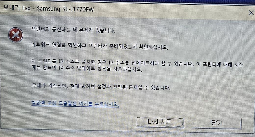 이 경우는 기존의 드라이버를 제거하고 다시 설치해야 하는데 프린터 모델에 맞는 드라이버를 찾아 설치하신 후 다시 시도해보시기 바랍니다.