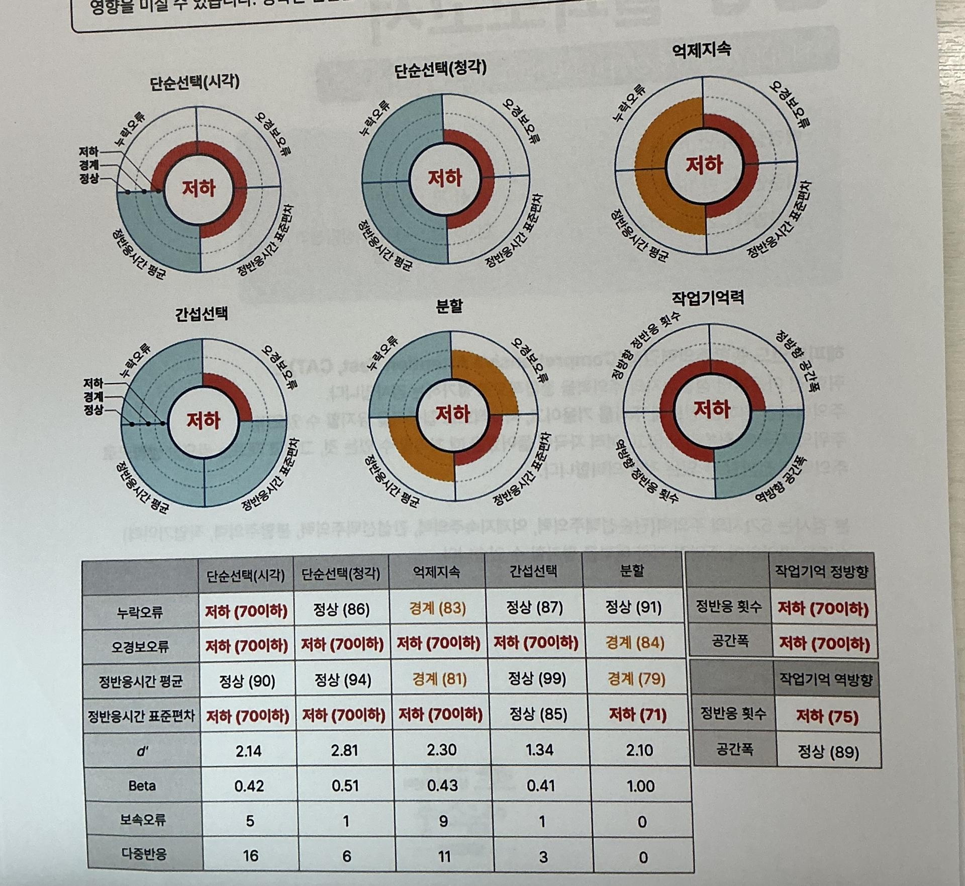 CAT검사 해석좀 부탁드립니다... 심한건지등등 설명을 잘 못들어서.. 어떤부분이 심한지 ADHD인지 등등 설먕 자세히게 부탁드립니다!!