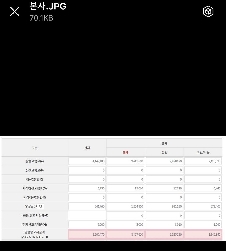 안녕하세요. 4대보험 업무가 너무 어려운 한 직장인입니다. 다름이 아니라 저희 회사는 시스템이 상당히 노후화되어있어서 매달 발생하는 4대보험을 edi 및 토탈 서비스에서 엑셀로 내려받고 데이터를 가공하고 있는데요. 4월 보험료 관련하여 전표 처리와 지출품의서를 처리하려다가 금액이 다른 부분을 확인하였습니다. 저희 회사는 본사/공장1/공장2 이렇게 세개의 관리번호가 다르기때문에 각각의 관리번호를 통해 고용 산재 토탈 서비스에서 파일을 내려받는데 이렇게 고용산재토탈서비스에서 내려받은 파일 총합계액은 고용 = 27,579,710원입니다. 하지만 지로영수증을 확인해보니 고지서 금액에는 27,561,650원이 찍혀있는데 차이액이 도대체 뭔지 모르겠습니다. 산재보험도 마찬가지고 고용산재토탈서비스에서는 17,562,810원인데 지로영수증에는 17,545,840원으로 총 차이액이 -16,970원이 나네요 .. 적게 나가는거야 좋지만 그 부분이 어떤 부분인지를 알아야 최종 납입현황 및 품의서 , 전표 처리를 할 수 있는데 도무지 봐도봐도 모르겠어요 .. 해당 사항을 알려면 공단측에 문의하는게 가장 빠를까요 ? 아니면 3월 15일까지 신고한 보수총액에 대하여 연말정산이 실시되어 발생한 환금이자 이런거일까요 ? 일단 관련사항 첨부드리오니 혹시 차액에 대하여 어떻게 처리하면 될 지 알려주시면 감사하겠습니다 !