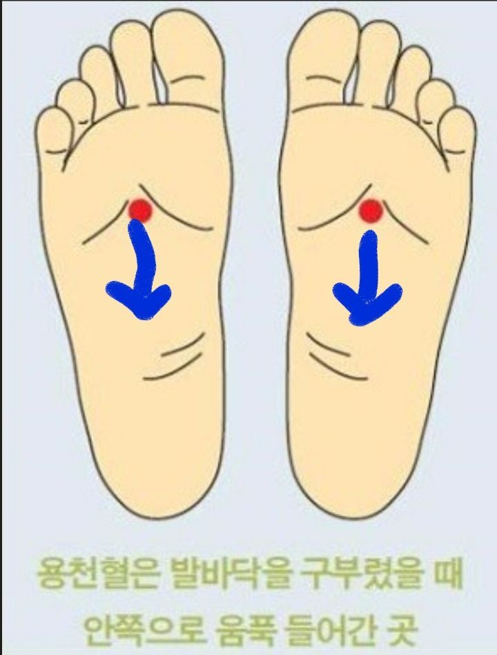 용천혈을 보하면 신장 경락을 자극하여 정력에 도움이 됩니다.