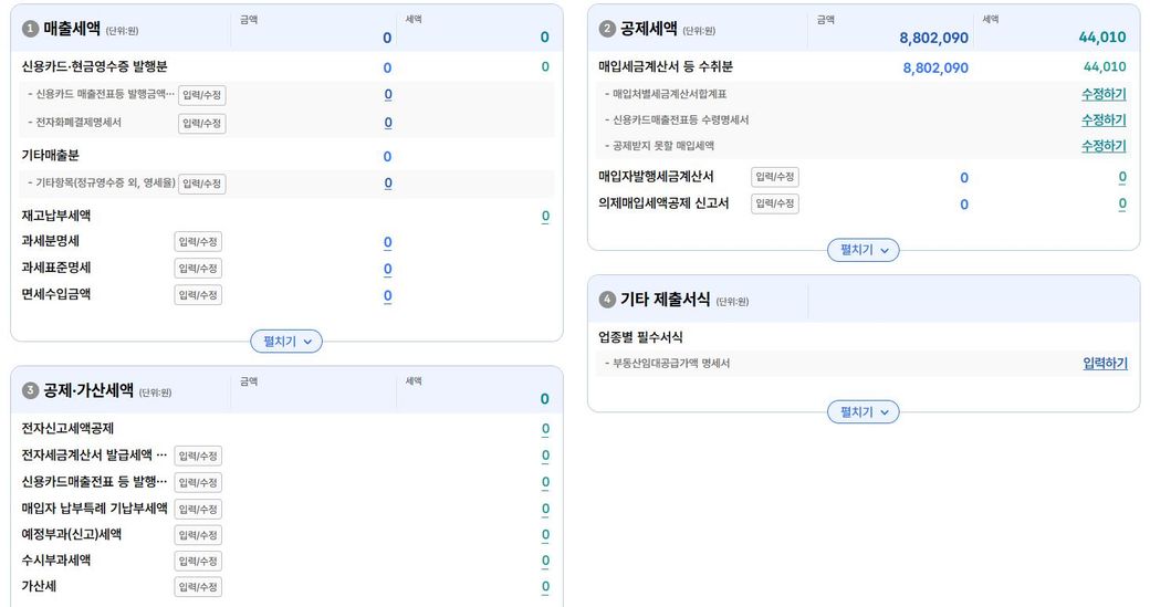 (공제세액은 매출세액합계보다 초과하여 입력할 수 없고 같거나 작아야 합니다.)