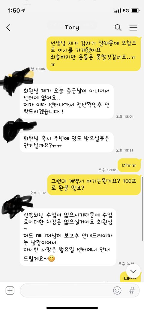 어끄제 환불 말씀드렸고 오늘 헬스장을 가니