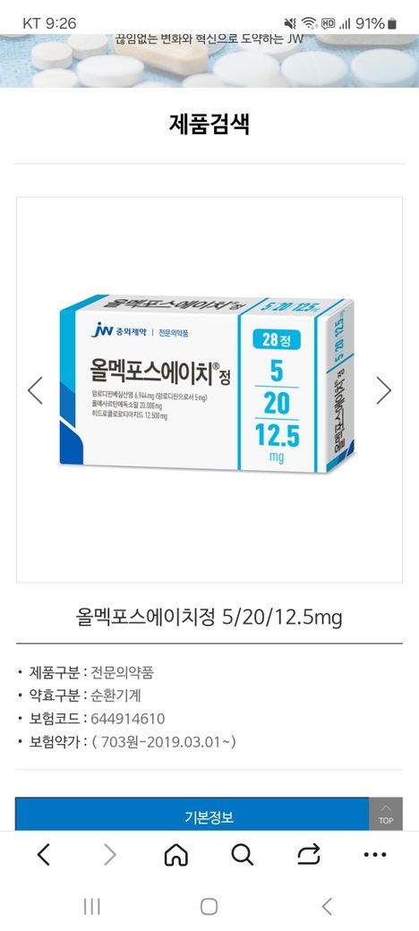 기존에 복용하던 발데사르플러스정보다 새로 처방된 올멕포스에이치정이 혈압 강하제 1종이 더 추가돼 효과가 강한 약 입니다.