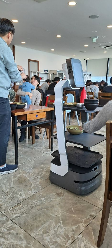 이미 많은 식당에서 서빙하는 로봇들이 활동하고 있습니다. 애술* 이라는 패밀리 레스토랑을 비롯해 유명 프렌차이즈에서 사용한 접시를 회수하는 업무를 하더라구요.